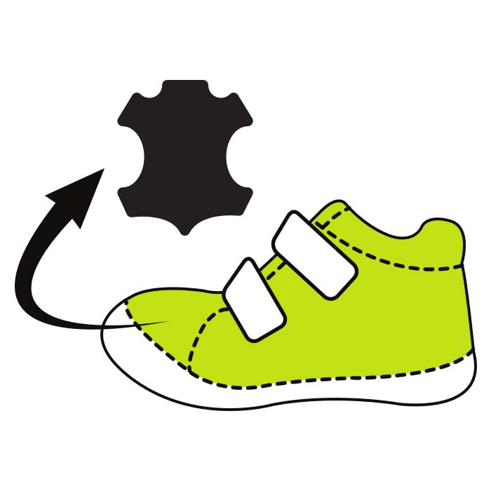 Роль обуви в удобстве и здоровье ног очень важна. Именно поэтому мы изготовляем наши изделия из натуральной кожи наивысшего качества, что обеспечивает отличное чувство комфорта и мягкости. Из первоклассной коровьей шкуры тщательно отбирается часть нужной толщины, из которой, в конце производственного процесса, изготавливается самая совершенная детская обувь. Мы стремимся к тому, чтобы детали, контактирующие с кожей ребенка, были сделаны только из натуральных материалов.